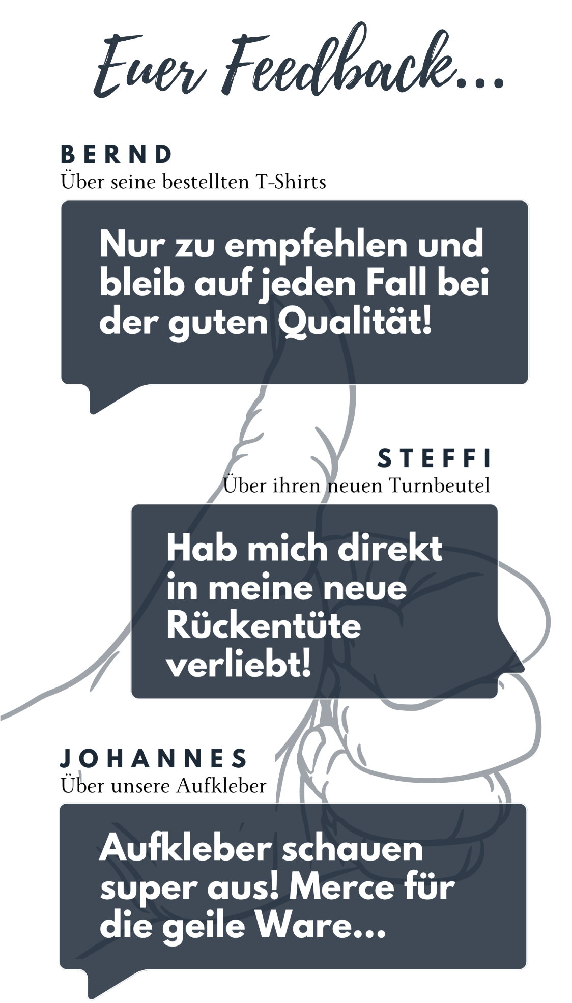 Deine Anlaufstelle für einzigartige Fanartikel, die alle mit viel Liebe einzeln von uns per Hand veredelt werden. Wir wollen euch nicht nur irgendwelche T-Shirts oder Aufkleber andrehen...sondern wir stehen zu 100% zu unseren Produkten. Eine hohe Qualität, sodass ihr auch lange etwas von unseren Produkten habt, und ein durchdachtes Design, hinter dem immer eine Message steht, ist dabei unser Mindestanspruch!
